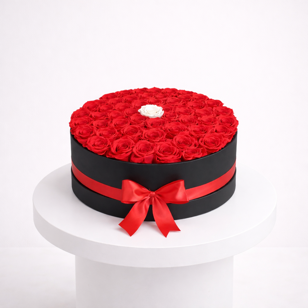 Russian Romance 51 Red Roses Signature White