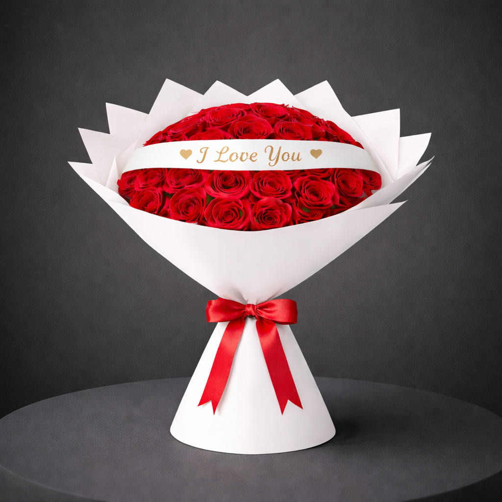 I Love You 51 Red Rose Signature White