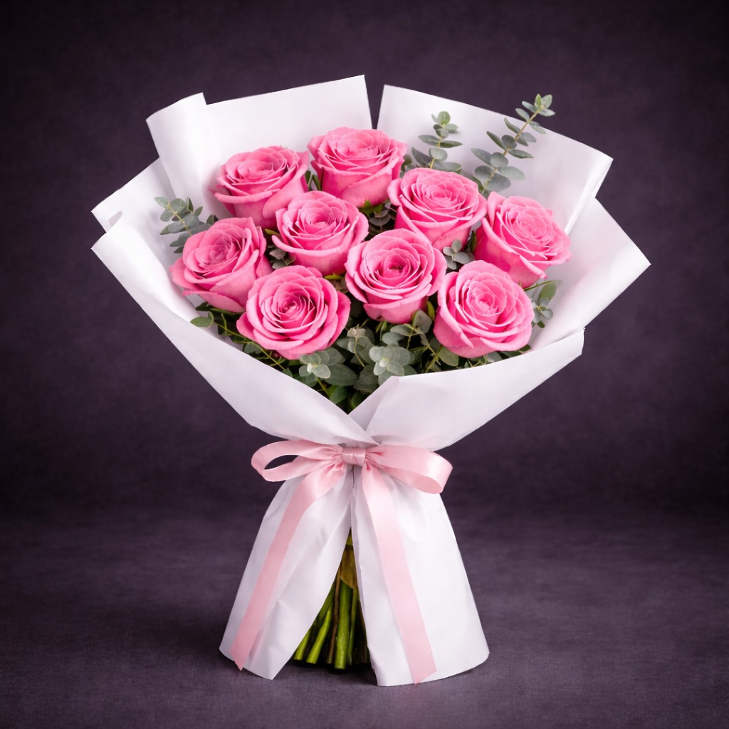 9 Pink Rose Bouquet