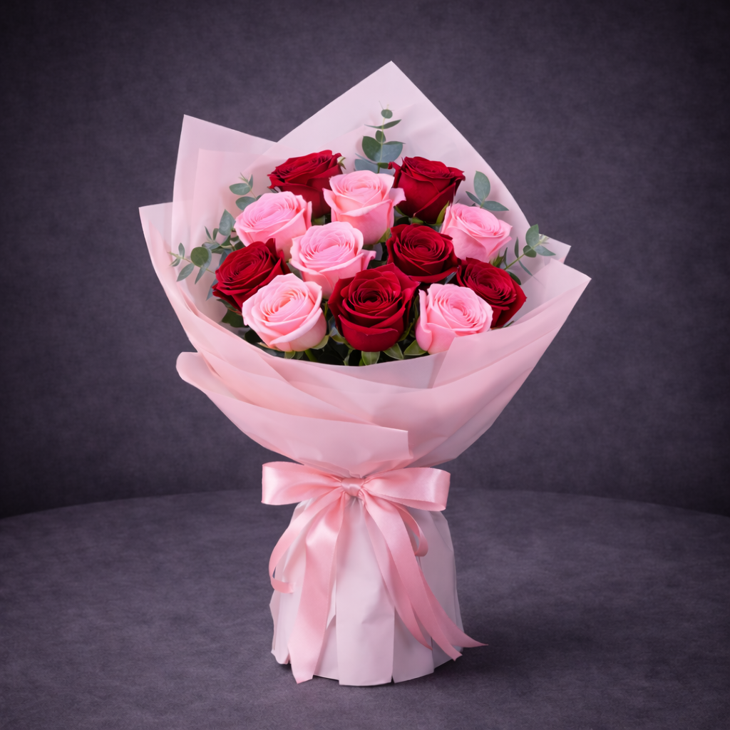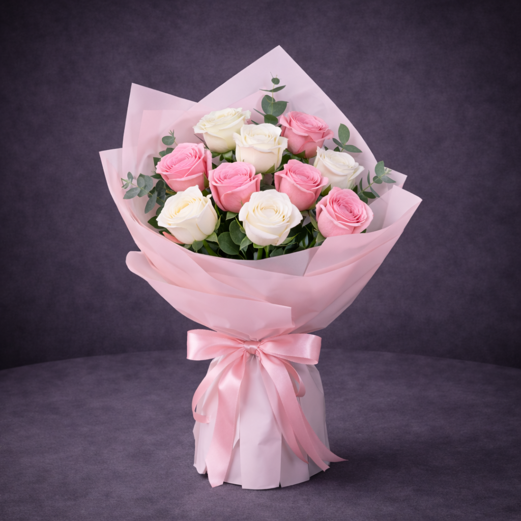 Mixed Pink & Ivory Rose Bouquet